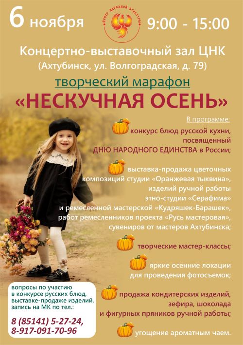 Дорогие ахтубинцы, а также гости города и района! Приглашаем вас окунуться в сказочную атмосферу золотой поры — стать участниками и гостями творческого марафона «НЕСКУЧНАЯ ОСЕНЬ»!