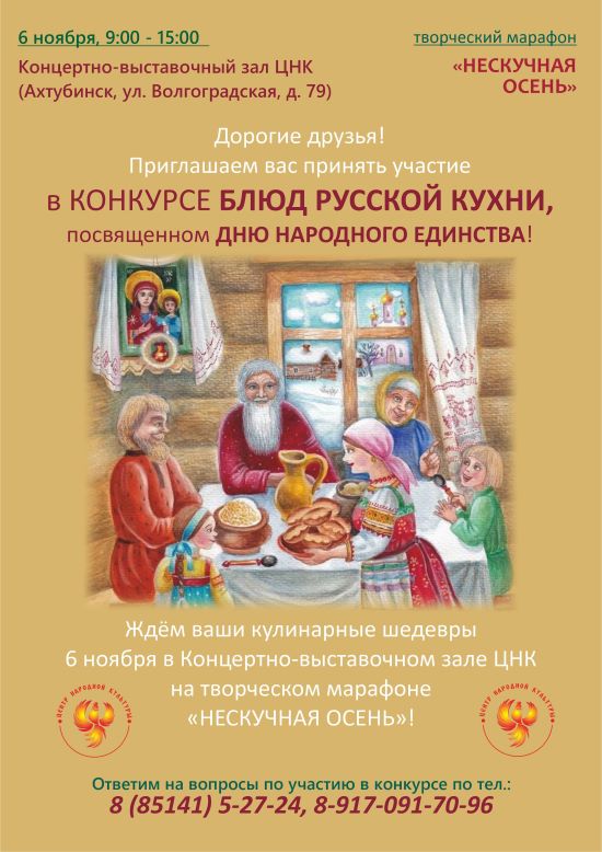 Впервые в рамках марафона — ВЫСТАВКА-КОНКУРС БЛЮД РУССКОЙ КУХНИ, посвященная Дню народного единства в России!