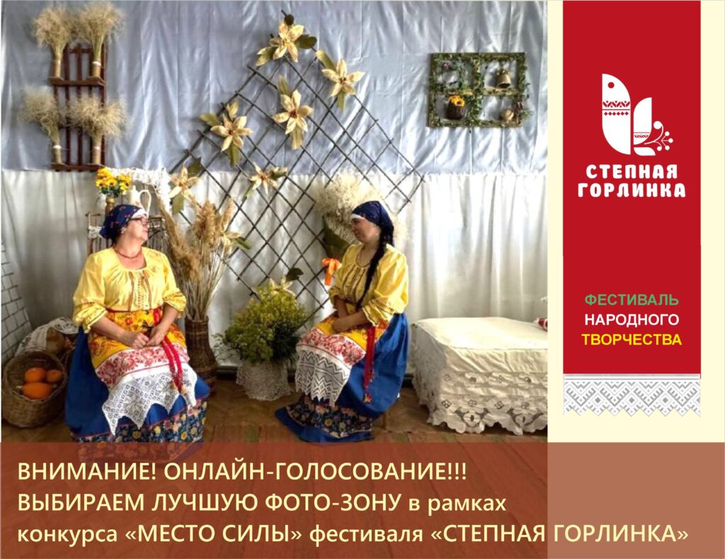 Дорогие друзья! Объявляем о старте онлайн-голосования на лучшую сельскую фото-зону в традиционном народном стиле! Выставка-конкурс «Место силы»среди коллективов сельских Домов культуры Ахтубинского района на лучшее арт-пространство, отражающее душу села и национальный колорит, проходит в рамках фестиваля народного творчества «Степная Горлинка».