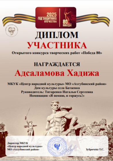 В Ахтубинском районе 80-летие Великой Победы также встречают одна блокадница, Мандригель Галина Семеновна, и 41 труженик тыла. Низкий поклон и здравия дорогим нашим ветеранам — участникам и свидетелям тех далеких героических событий!